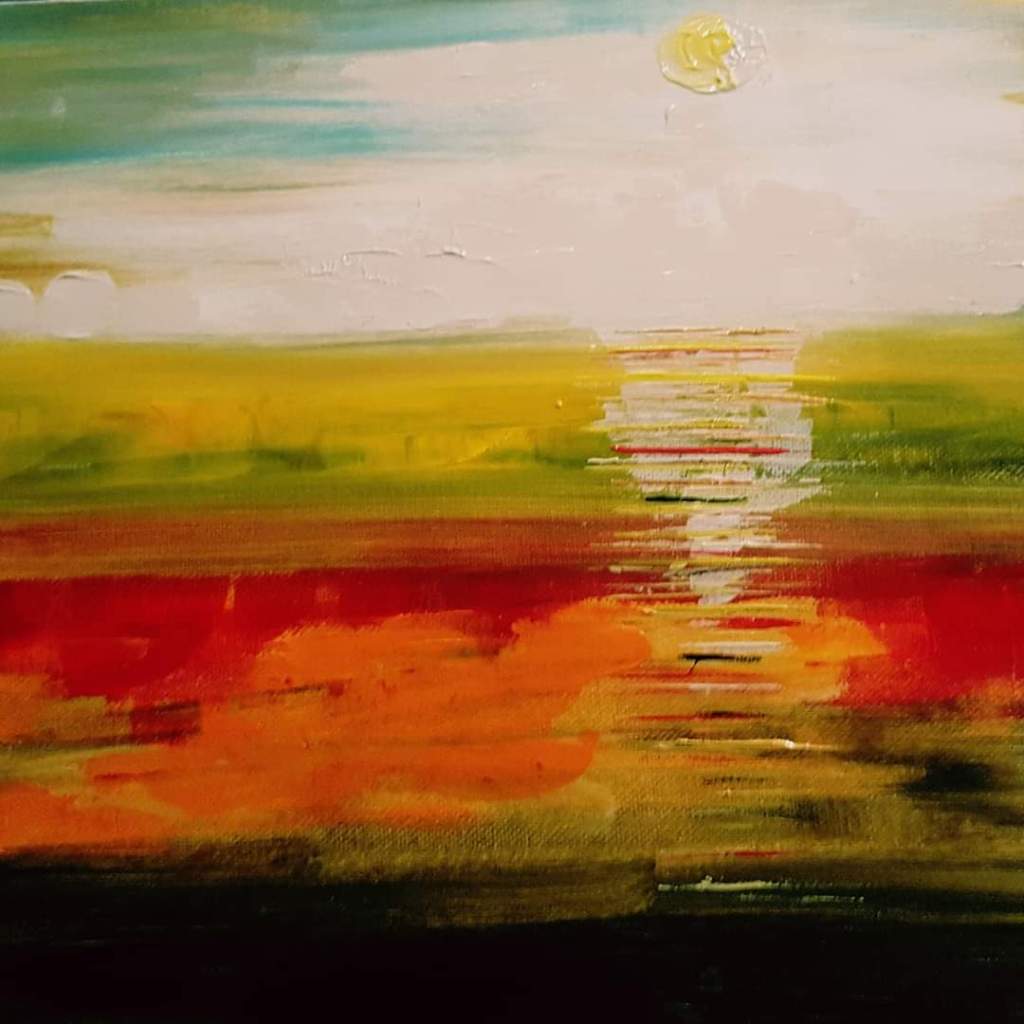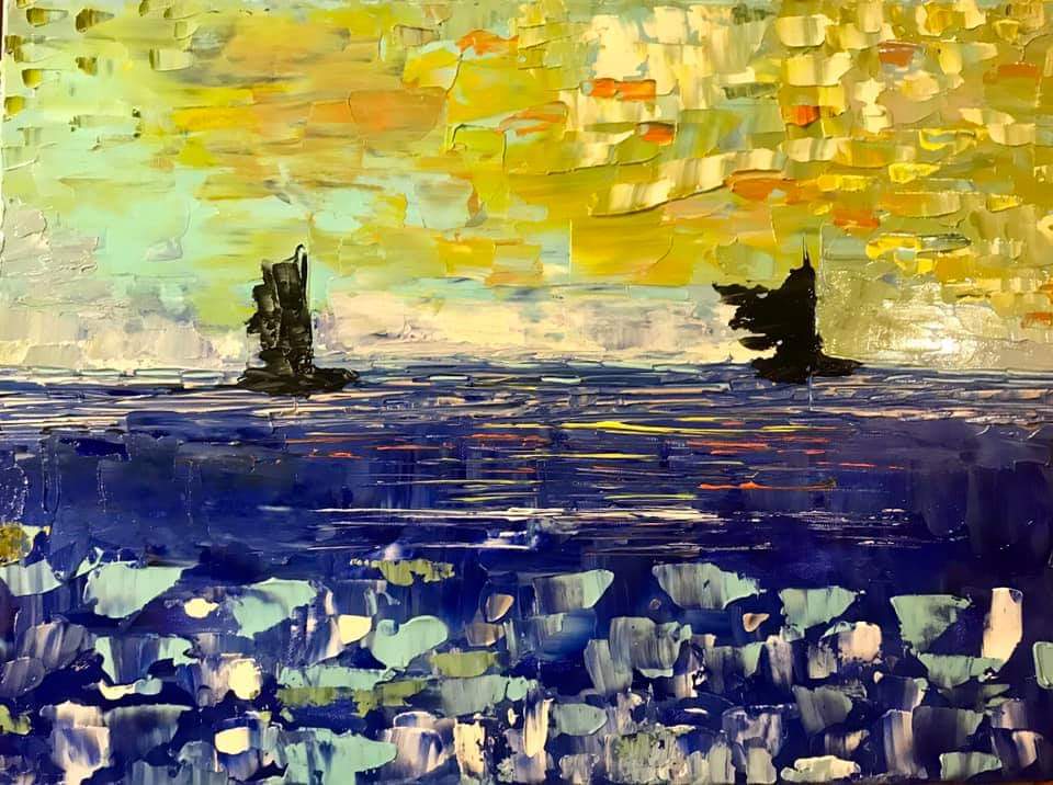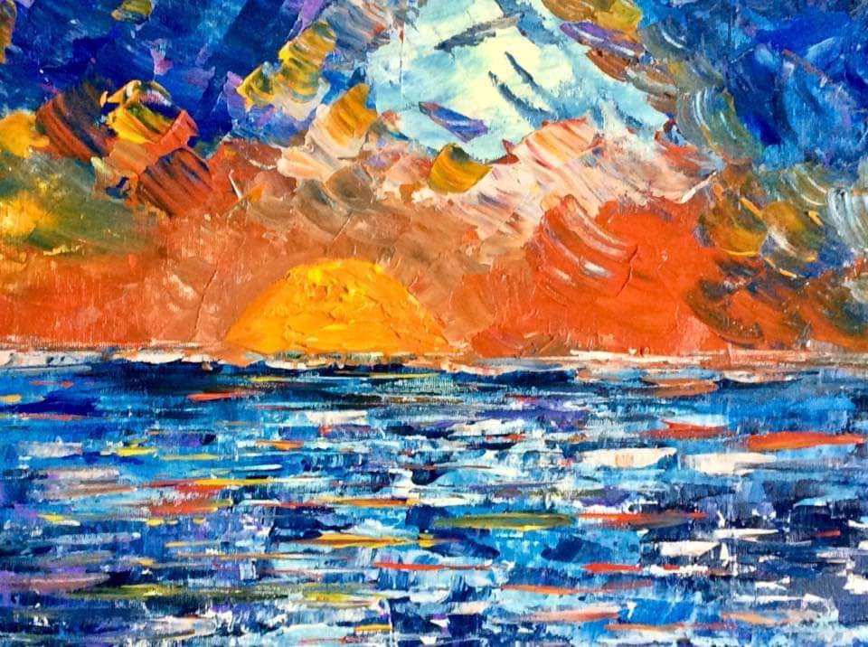 Tela di galleria 40×50. Acrilico a spatola. Un’ultimo sguardo all’estate. L’ultimo tramonto in Sardegna. Il quadro è stato venduto privatamente.