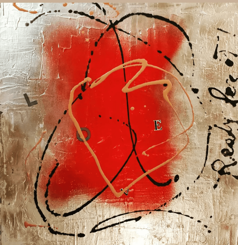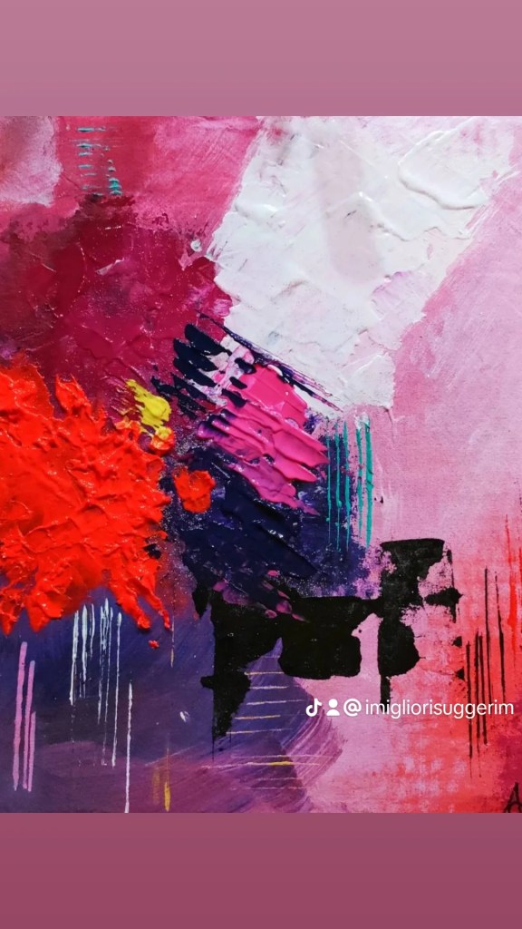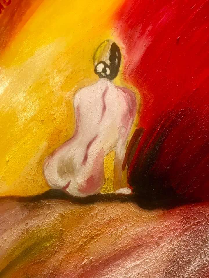 il quadro narra di una parte importante delle donne il ❤️ il sentimento che ho voluto raffigurare con il colore rosso e terra di Siena due colori che rispecchiano il caldo, il calore, che difficilmente io ho trovato negli anni passati della mia vita, ma che oggi continuo a ricercare nelle persone come linfa vitale x affrontare tutte le sfide e le battaglie che la vita mi mette davanti.
