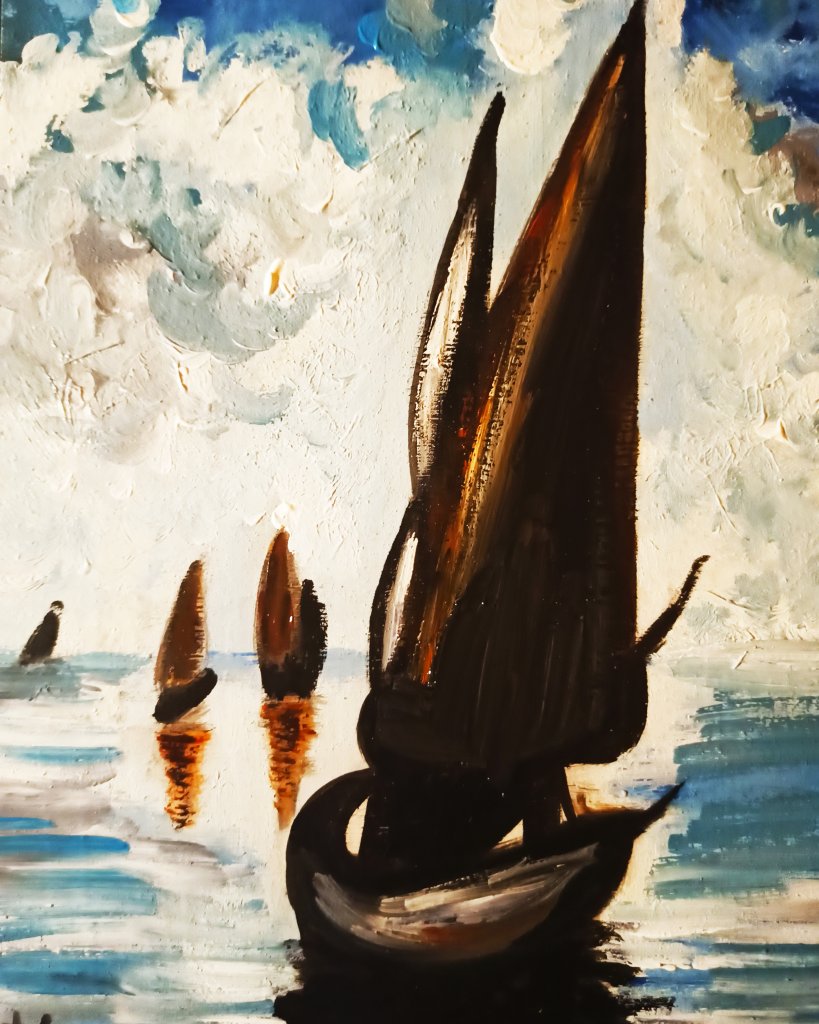 Tela 30×40 acrilico a spatola.Quadro riproposto in più versioni, in chiave temporalesca. Il quadro è stato venduto da Catawiki.