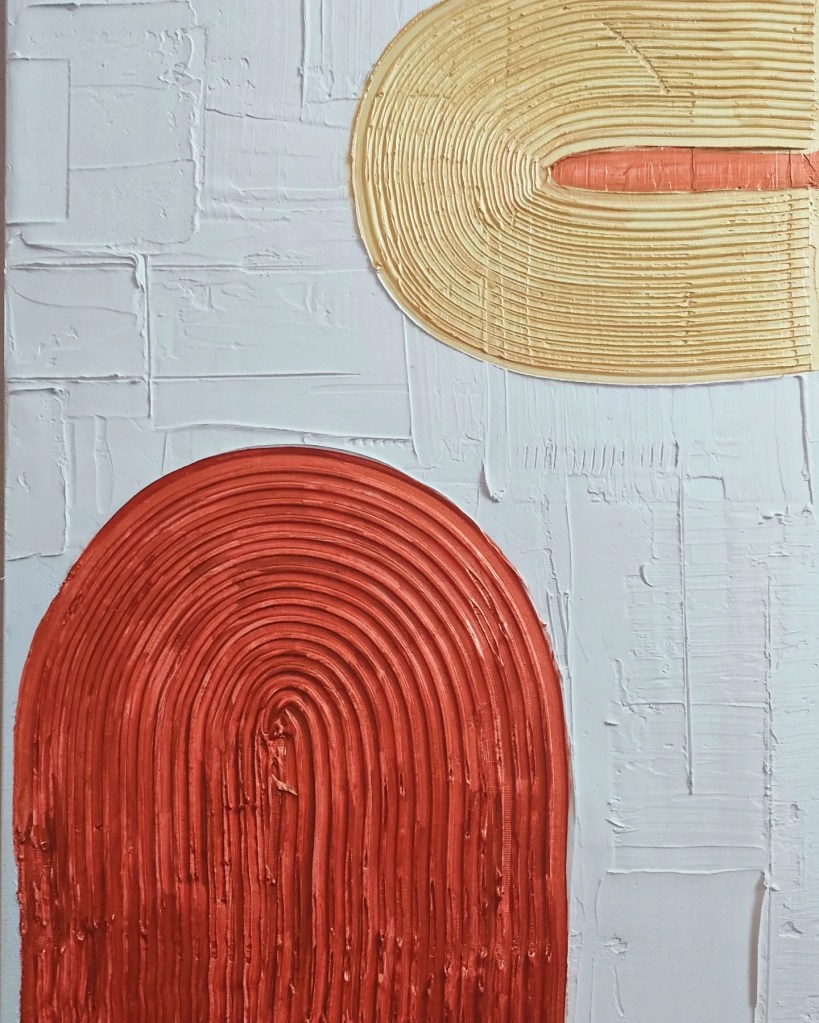 Tela 50×70 in arte materica astratta finalmente l’ho terminato dopo settimane. Realizzato con stucco acrilico colla vinilica foglia oro e vernice brillante . Lavorato metà a spatola e meta a ✋ direi che i materici mi affascinano molto questa branca della pittura astratta moderna mi intrippa. Penso che il quadro parli da solo , sono a pezzi stanchissima 🙋🙋👁️ ALL’ARTE FATTA IN SERIE cercate il 🖌️🎨e se vi va 👁️