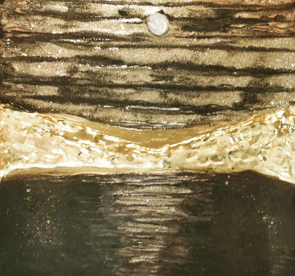 Tela 50×70 quadro in acrilico e pasta modellante con resina epossidica decorativa all’acqua.Il quadro è un materico effetto 3d, l’acqua delle grandi distese, richiama anche l’universo nella quale viviamo e che dobbiamo cercare di preservarlo al meglio. Il quadro è stato venduto su Saatchi Art Gallery.