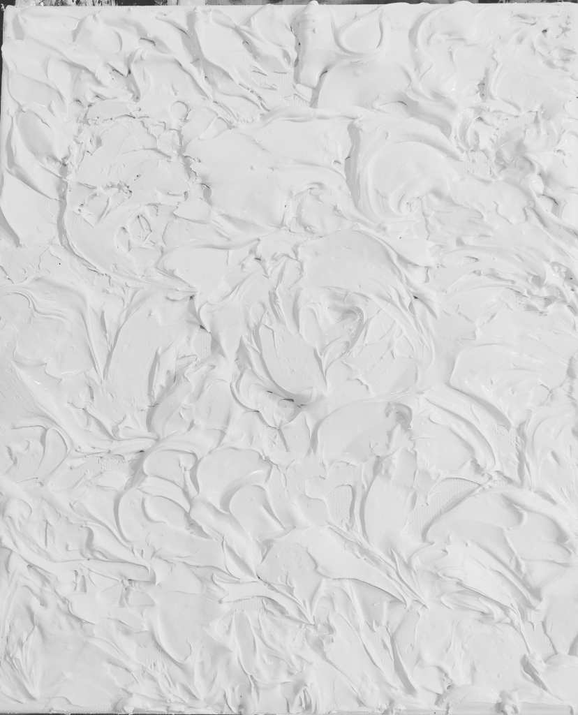Realizzato con pittura ad olio, spaghetti tritati e gesso sintetico a spatola.