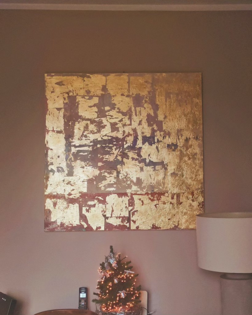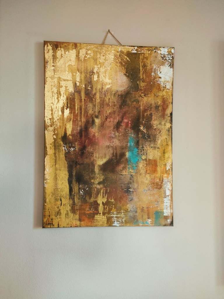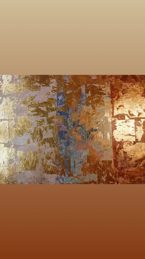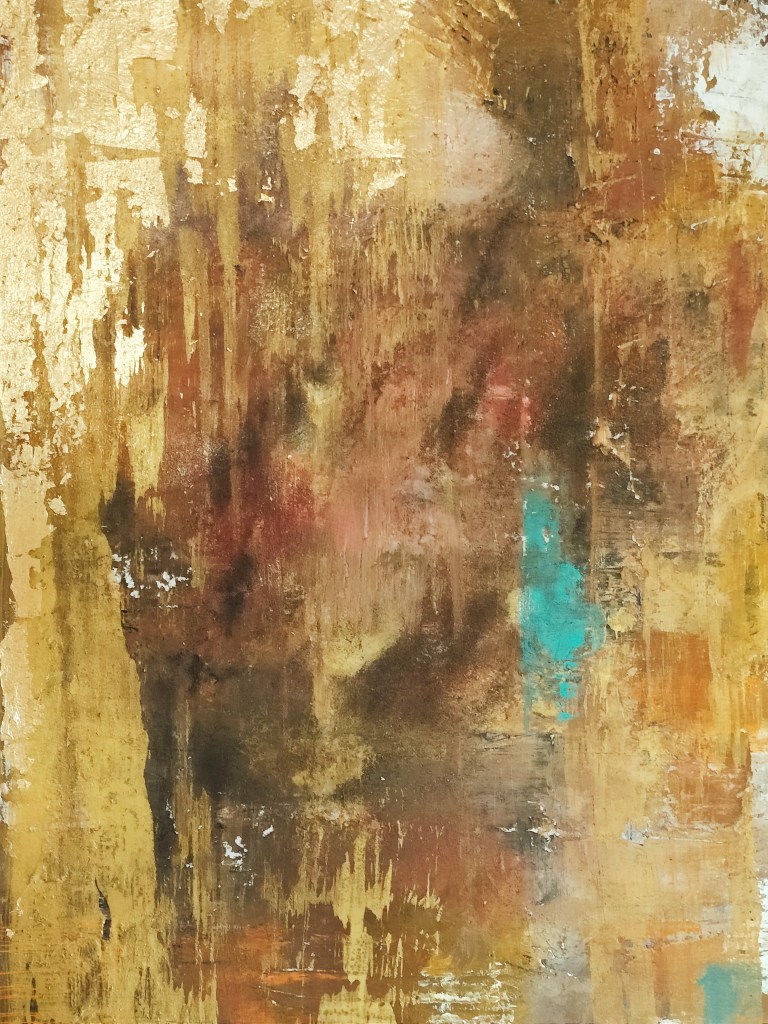 Acrilico a spatola in texture con pasta in struktur di fondo +foglia oro ben 30/40